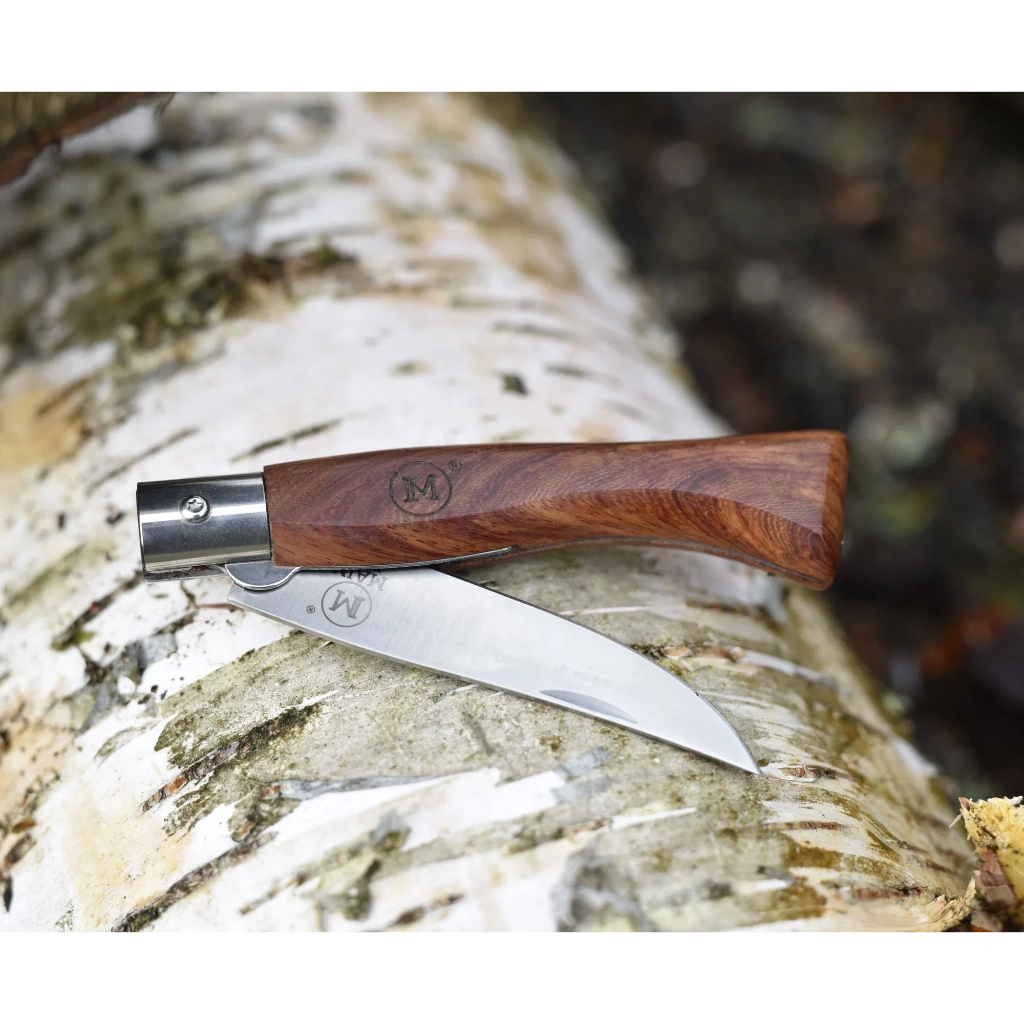 Η ξύλινη λαβή από φυσικό ξύλο Bubinga εξασφαλίζει άνετο κράτημα και ξεχωριστή εμφάνιση. Το μικρό βάρος και ο εργονομικός σχεδιασμός το καθιστούν ιδανικό για καθημερινές εργασίες, πεζοπορία ή κάθε δραστηριότητα όπου χρειάζεσαι ένα αξιόπιστο μαχαίρι τσέπης.
