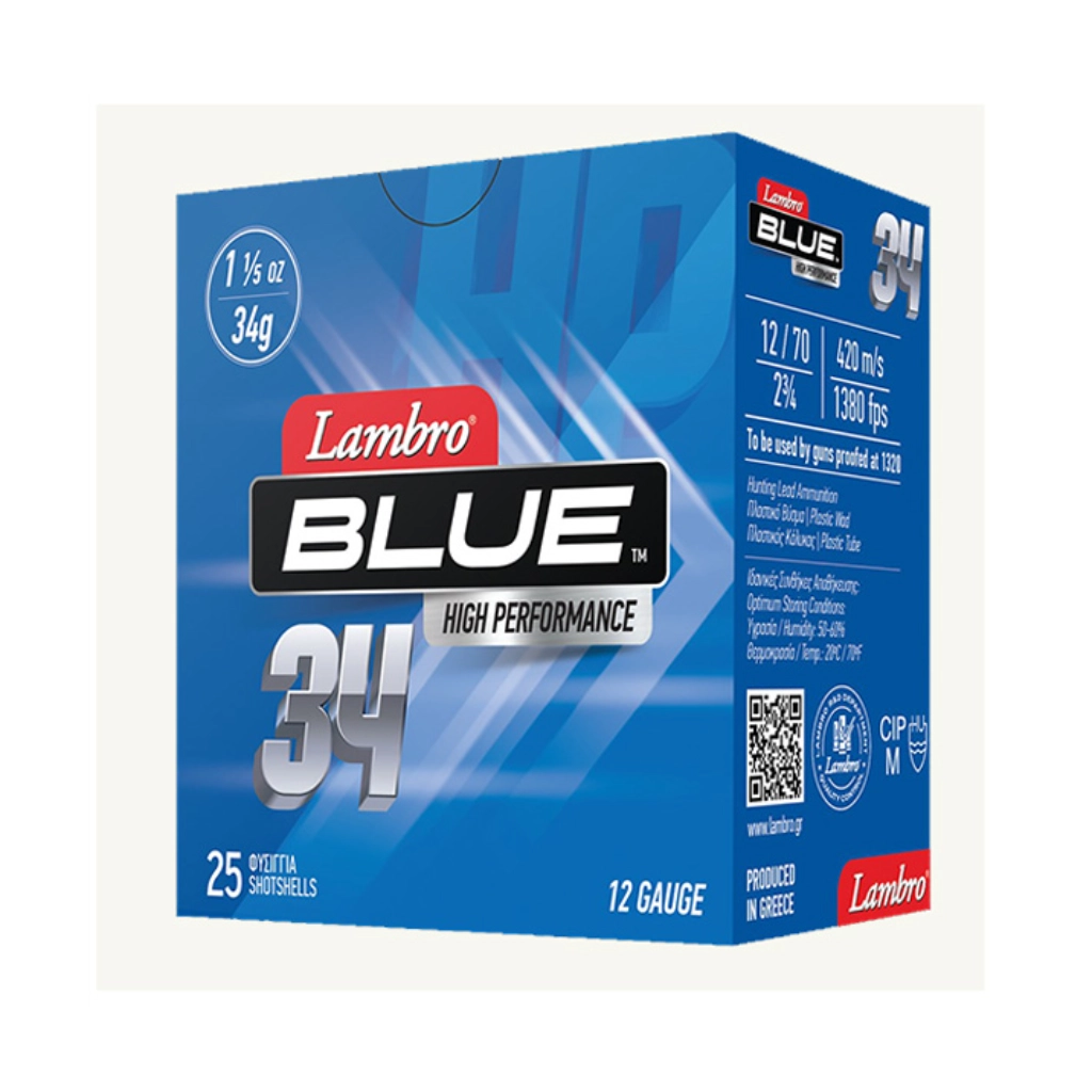 Φυσίγγι Κυνηγίου Lambro BLUE ΜΠΛΕ 34gr. Καταξιωμένο φυσίγγι κυρίως στο κυνήγι υδροβίων και στο κυνήγι λαγού. Μπορεί ωστόσο να χρησιμοποιηθεί και σε μικρότερα θηράματα όπως κυνήγι πέρδικας, κυνήγι φάσσας και κυνήγι τρυγονιού. Γόμωση με πυρίτιδα διπλής βάσης SIPE για απροβλημάτιστη απόδοση υπό όλες τις καιρικές συνθήκες.